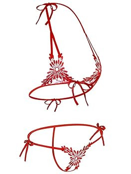 Design of Top: lingerie set with sheer embroidery cups make you more sexy and charming. Self tie on the neck and chest to offer perfect fit,it is easy wearing.