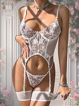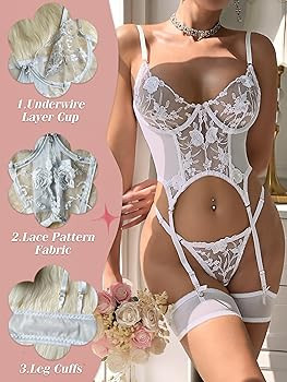 Style: The sexy teddy lingerie is the perfect addition to any wardrobe.Made with delicate sheer lace,this garter belt set will make you look sexy and feel confident.The adjustable straps and hook-and-eye closures at the back ensure a comfortable.This bustier lingerie is perfect for a Boudoir Shoot or any special moment.