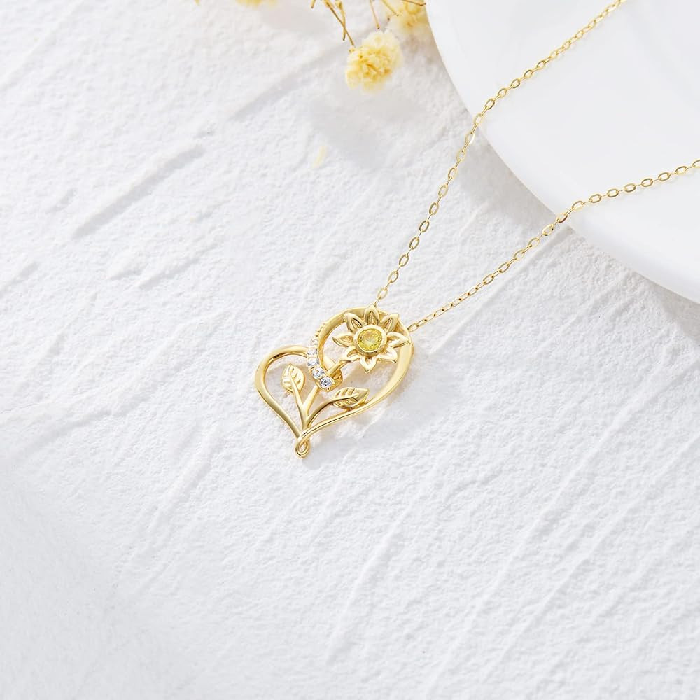 • 14k Gold Sunflower Necklace: Solid gold heart necklace crafted in 14k gold , nickel-free, lead-free,hypoallergenic and cadmium-free , fit for sensitive skin.