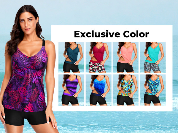 2 Piece Tankini: The red floral printed two piece tankini swimsuit comes with shorts, removable padded bras, adjustable wide shoulder straps, and an athletic style.