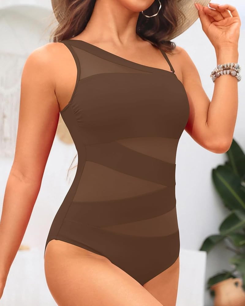 Sexy Mesh Swimsuits: This 1 piece swimsuit is designed with a cutout style and see-through mesh inserts for a chic and slimming look. Unique asymmetrical cut design adds a touch of fashion to your overall look.