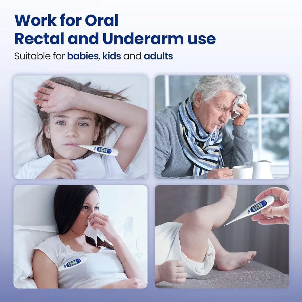 Wide Range of Use: Works for orally, rectally and in armpit. It is suitable for all ages, babies, children, adults and pets to measure temperature