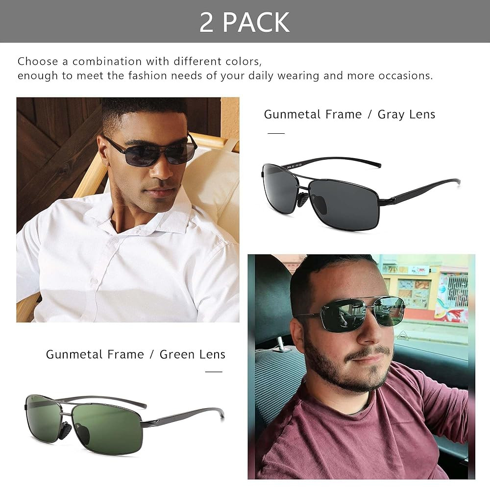 Package Includes: 1* Grey sunglasses, 1* Dark Green sunglasses, 1* Cleaning cloth, 1* Sunglasses pouch,1* Mini screwdriver and 1* Exquisite packaging, Nice gift package, making it a wonderful gift Idea for your family and friends