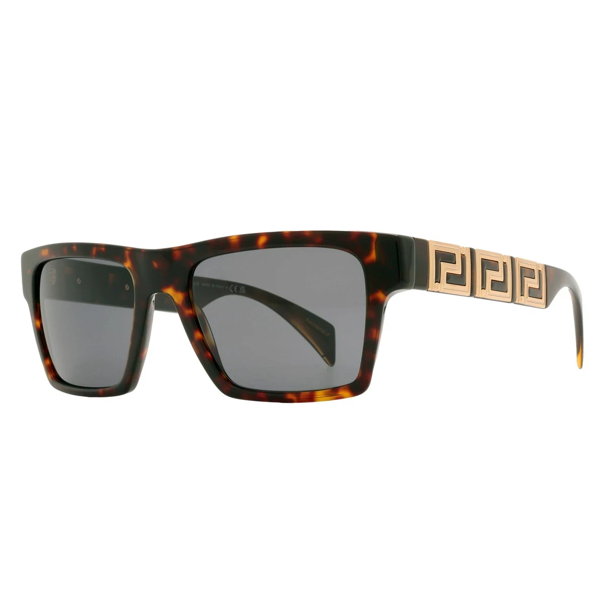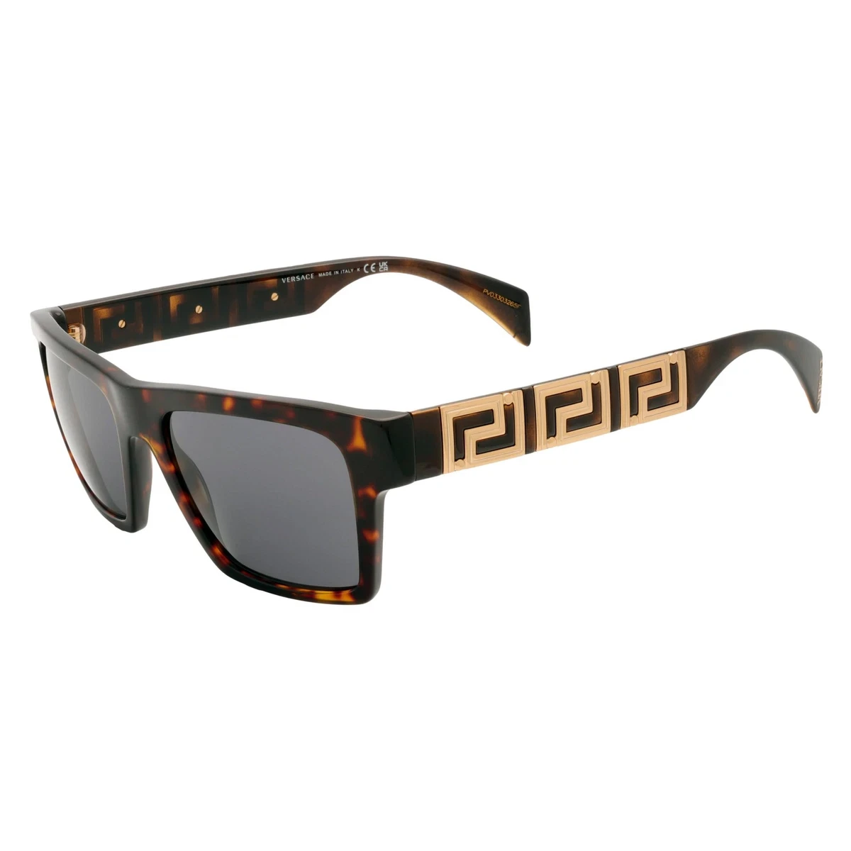 Versace Sunglasses. Series number: VE4445. Color code: 108/87. Shape: Rectangular. Lens Width: 54 mm. Lens Bridge: 19 mm. Arm Length: 145 mm. 100% UV protection. Non-Polarized. Frame Material: Acetate. Frame Color: Havana. Lenses Type: Dark Gray. Rim Style: Full-Rim. UPC/EAN code: 8056597837934. Versace Dark Gray Rectangular Men's Sunglasses VE4445 108/87 54.