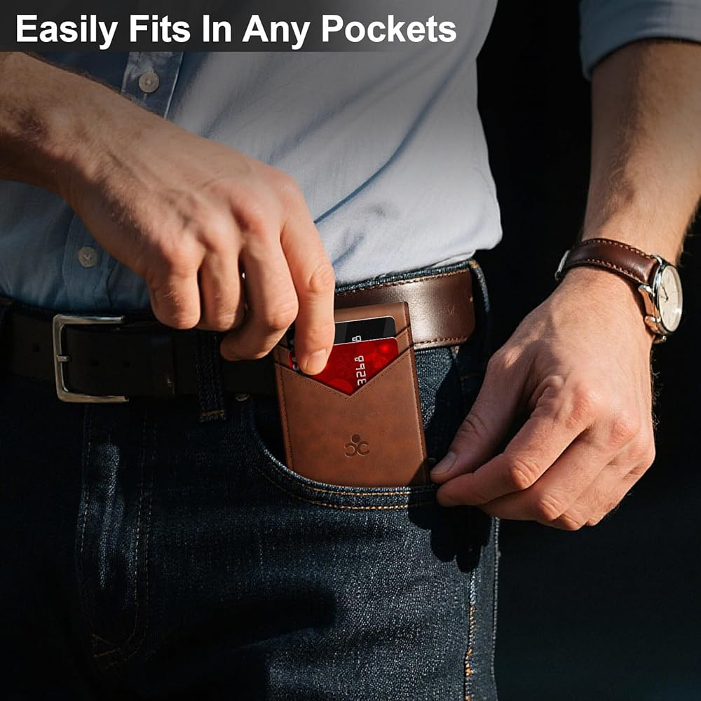 LARGE CASH SLOT & CLEAR ID WINDOW: In addition to the card slots, this card holder wallet has a spacious cash slot that can hold 10–15 bills. The leather flap includes a transparent ID slot, ideal for an ID card or driver’s license. It’s designed to meet the everyday needs of men.