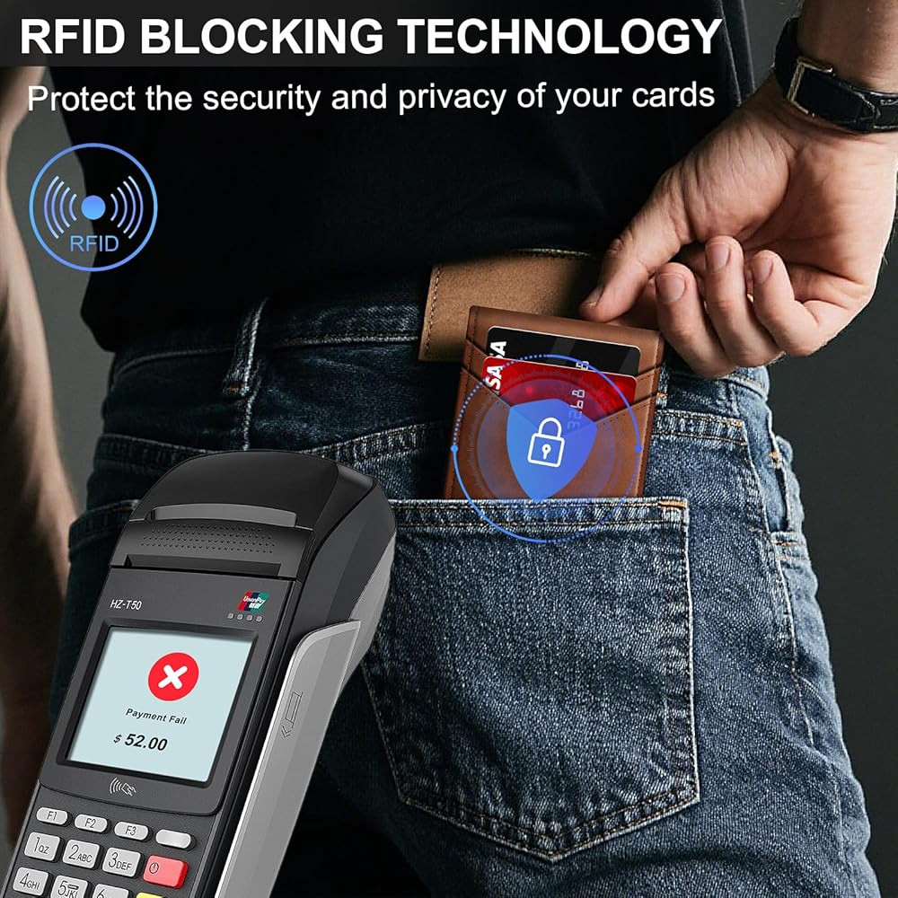 RFID BLOCKING: The rfid wallet for men is lined with RFID-blocking fabric inside the leather layers. This protects your personal and financial information from unauthorized scans.