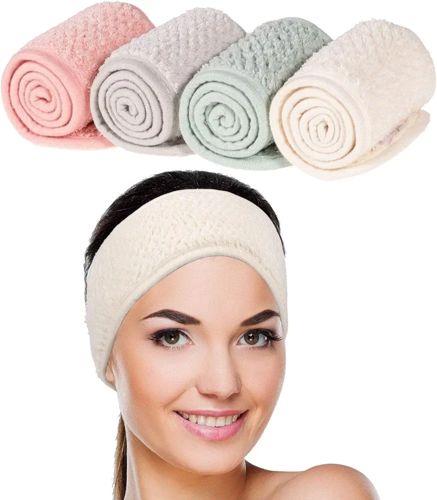 • MULTIPLE COLORS & MULTIPLE CHOICES - 4 packs facial headbands in different colors are included in the package, pea green, pink, beige and light gray, you can choose any colored headbands for different uses or occasions, which is very convenient for your daily replacement.