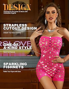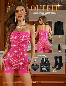 Enhance Your Sensuality: Unleash your inner allure with our RSLOVE fishnet lingerie. This captivating piece features dazzling rhinestone details that beautifully accentuate your curves, creating an irresistible and seductive look;