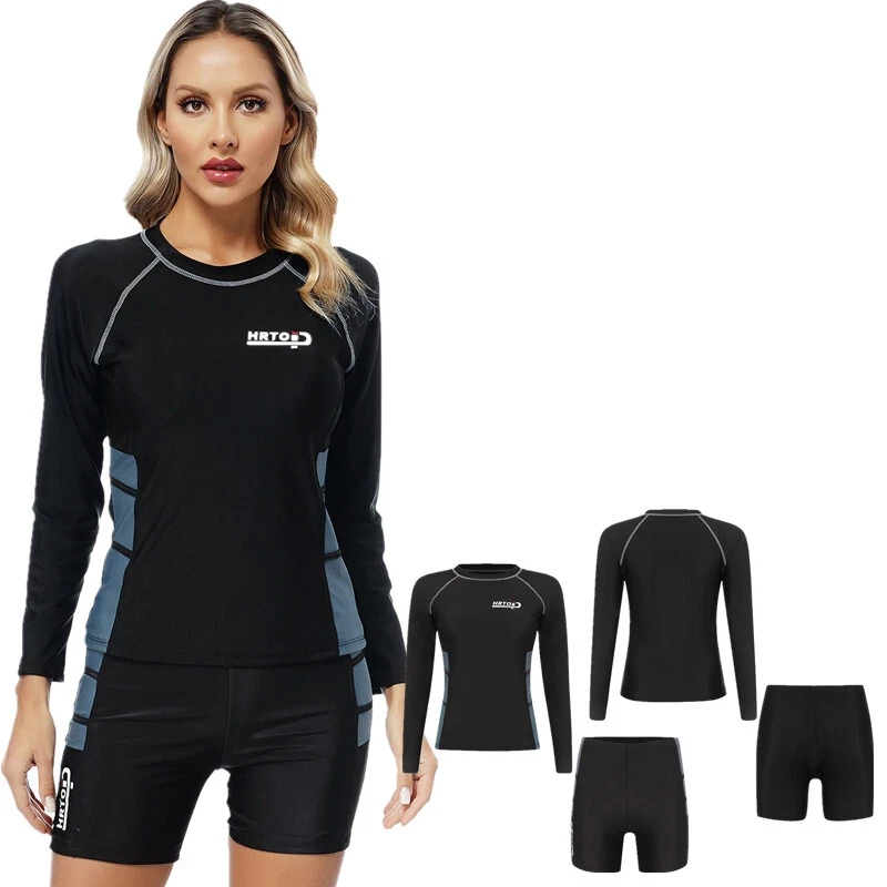 Full coverage rash guard set guarantee protection from sunburn and UV rays. Quickly-dry fabric keeps you always feel cool and dry.