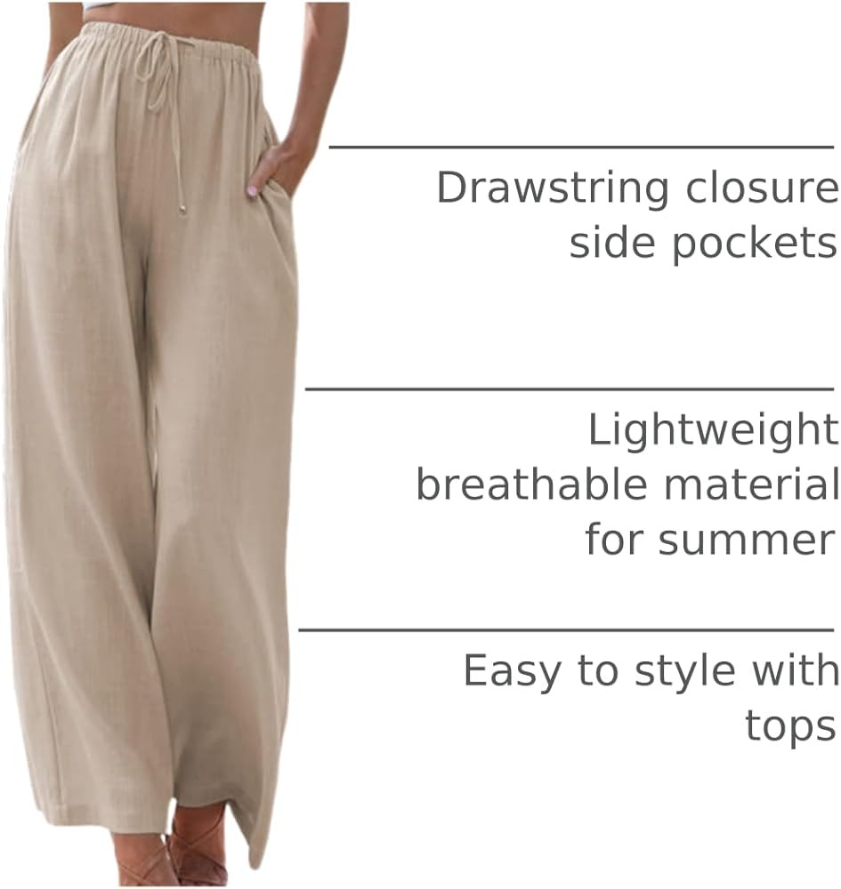 Wide leg, solid color, and elastic waist with drawstrings for women's summer palazzo pants