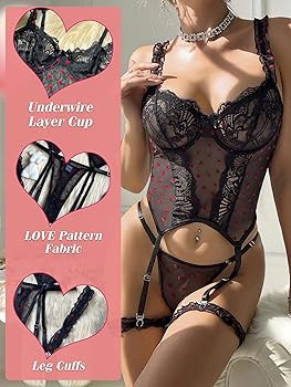 We have added a bust support design to this sexy lingerie for women, which can effectively enhance the bust line, provide excellent support and charming push-up effect, so that your breasts will be more firm. womens bodysuit bow and heart pattern on the chest adds a lovely touch.