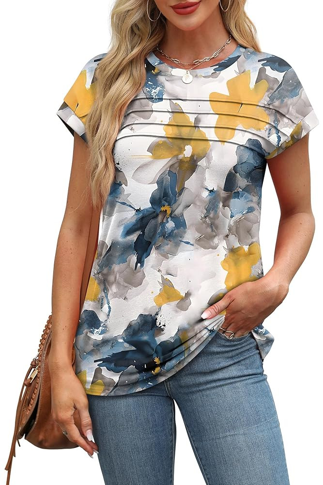 FEATURE: Designed with a flattering crew neck, cap sleeve, and a flowy pleated front, this womens t shirt combines style and comfort, making it one of the best short sleeve shirts for women
