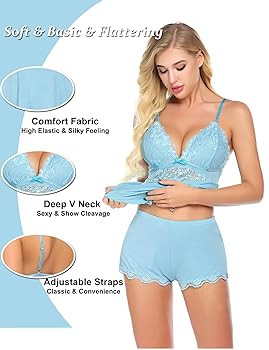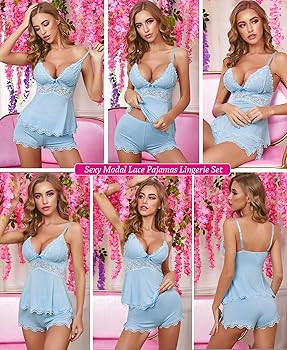 Avidlove short pajamas camisole Set featuring lace cups patchwork, adjustable spaghetti straps, drawstring waist. Very cute. Its casual style makes it not awkward even when kids at home or guest visits. The Pajamas Set is comfortable for your life