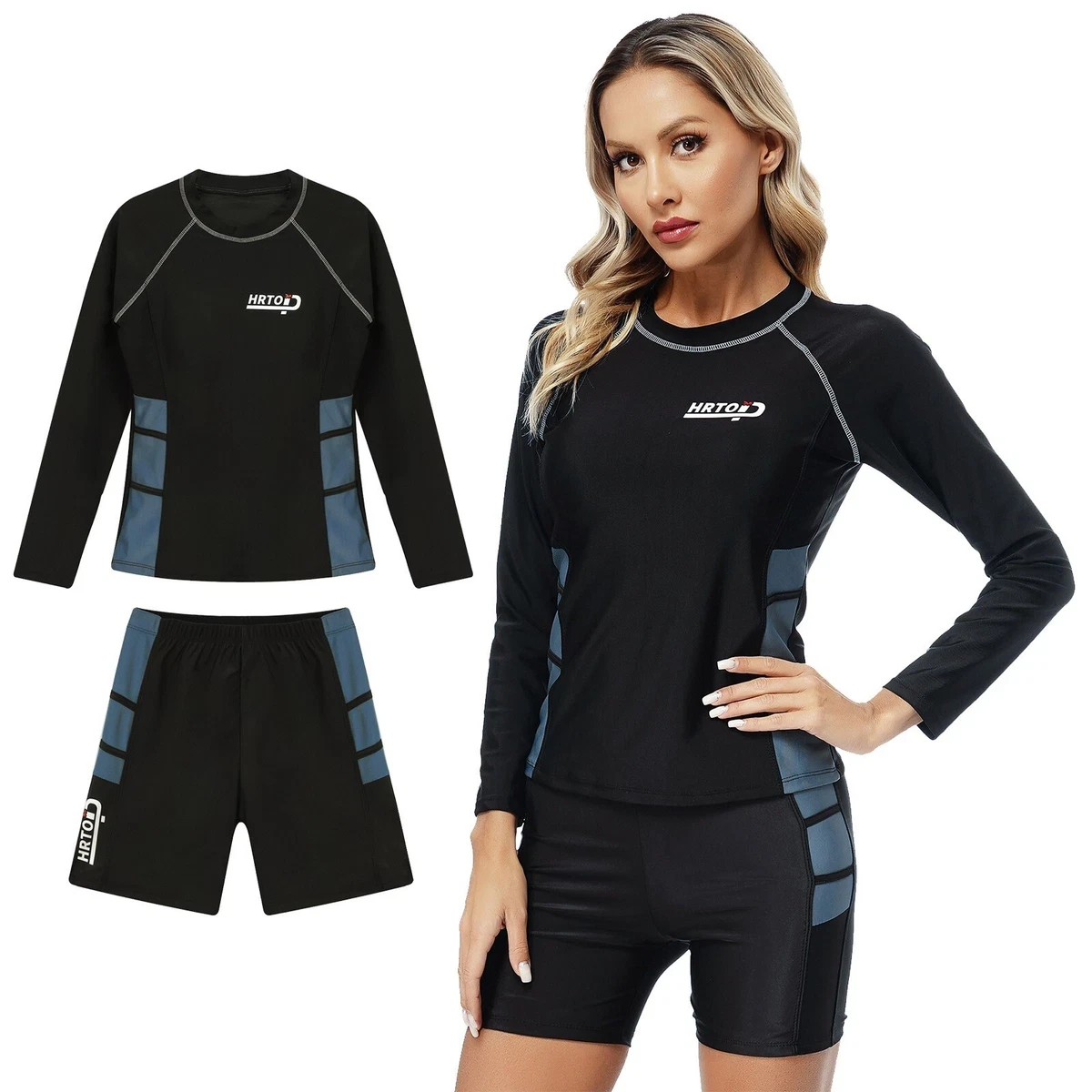 Full coverage rash guard set guarantee protection from sunburn and UV rays. Quickly-dry fabric keeps you always feel cool and dry.