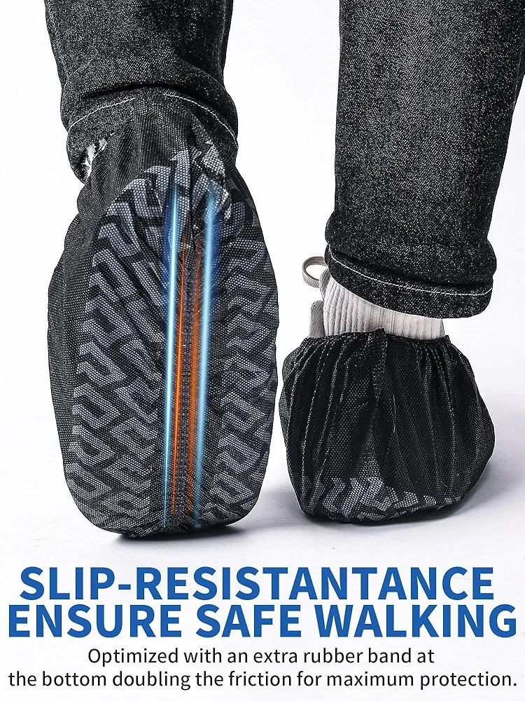 • New Upgrade Anti-Skid - A rubber band is added to the sole, and the tire pattern is silk-screened to increase the anti-skid effect. Safer to use on floors and other slippery areas.you don't need to worry about the booties will fell apart when your are wearing,ensuring your shoes can be covered by the shoe booties.