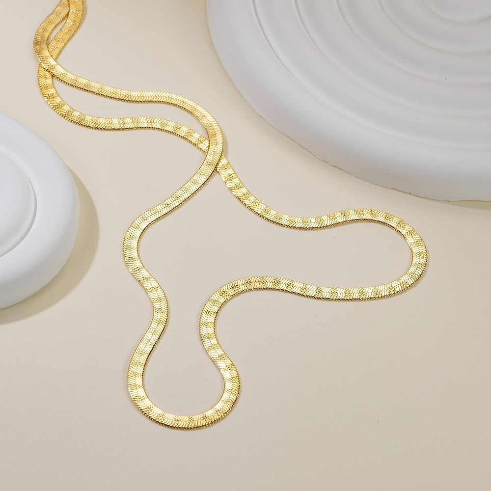 [STAY TOUCH, ENDLESS CHARM] Not your ordinary snake necklace for womens necklaces trendy. Tiny engraved patterns on this non tarnish gold necklace mens gold plated chain necklace catch the light like scattered stars in the night sky. Whether under bright lights or low-lit settings, this snake chain necklace brings quiet brilliance to your look