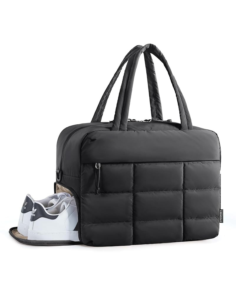 Puffy & Water-resistant: BAGSMART gym bag offers a comfortable carrying experience, whether sling it on buses or plop it on soggy fields. Popular puffer design makes it lightweight yet spacious, water-resistant fabric, don't worry about rainy days. Size: 15.7 x 9.1 x 11.8 inches
