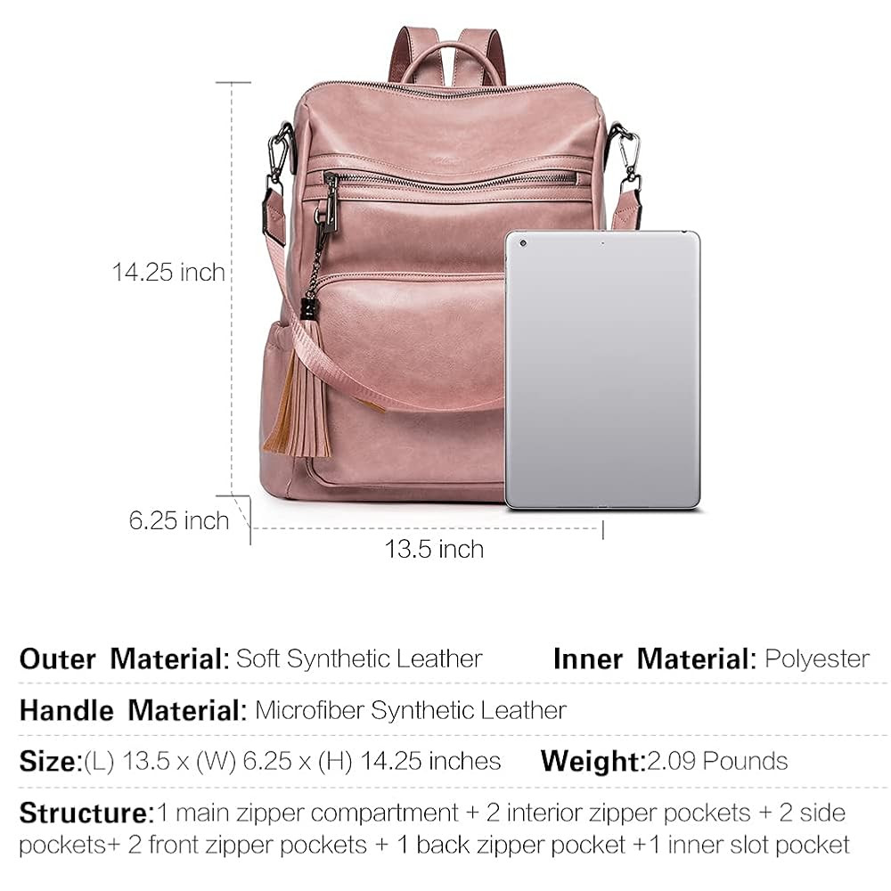 • Convertible Carrying Ways: The bag can be used as shoulder bag or backpack. 1 back zipper pocket for security and privacy. Top double U external zippers are designed for opening in two directions to have a quick access to your items.