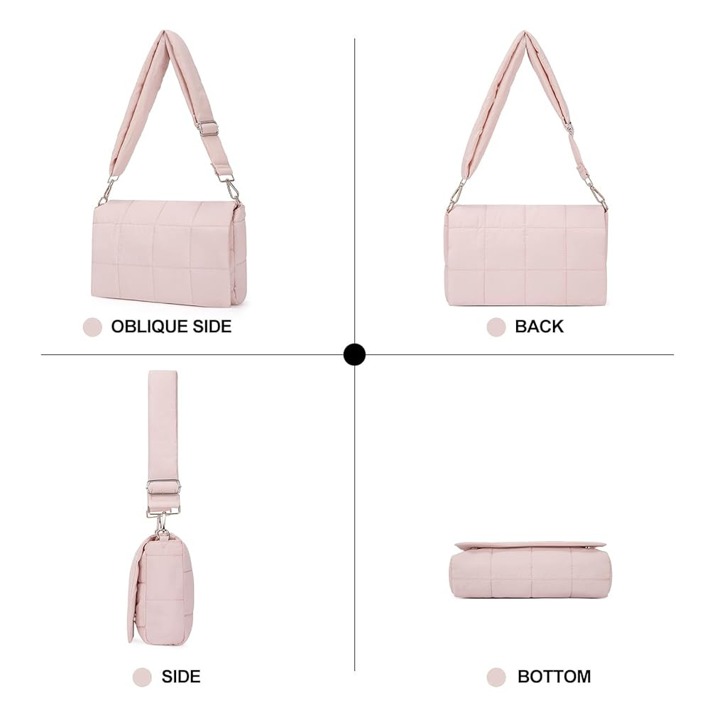 【LARGE CAPACITY】: Puffy crossbody bag for women size -11.7 x 2.76 x10.63 in (L x H x W). Light weight: 1.5lbs.The puffy tote bags can hold your daily needs, such as phone, wallet, keys, cosmetics, etc.