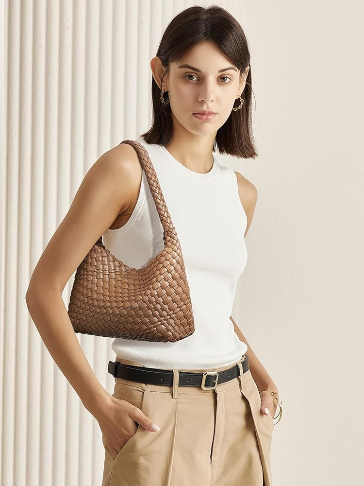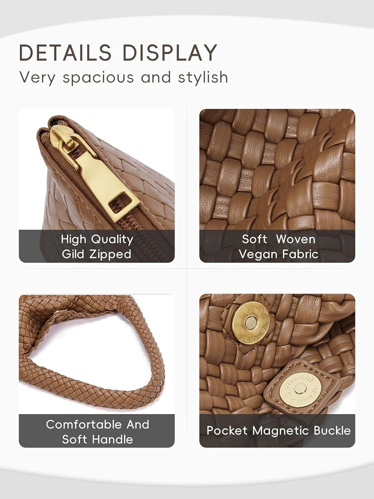 • 【Vegan Leather Tote】It is a hand-woven tote bag that is incredibly soft to the touch and is made of vegan leather.The tote bag fabric is soft and comfortable,it easy to wipe clean.Not only does it exude style, but this eco-friendly material ensures that no animals are harmed in its production.The intricate interlaced pattern and delicate woven detailing add a touch of sophistication, making this bag an admirable accessory.