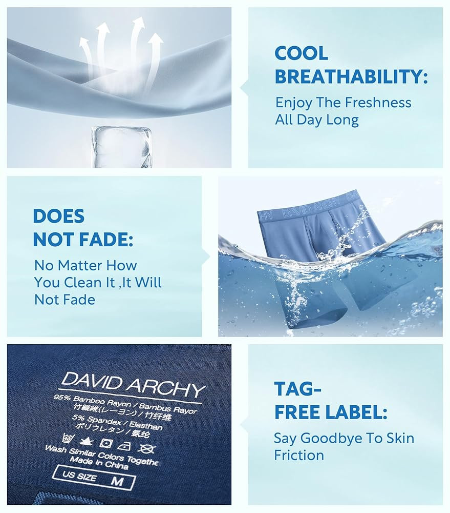 FIT TO MOVE: David Archy mens underwear provides a flawless fit with no ride and no readjusting, the foundation for your all-day comfort. Enhanced with added fine fibers for four-way stretch and shape retention, will move with you without giving any constriction. Suitable for workouts, commutes, or lounging