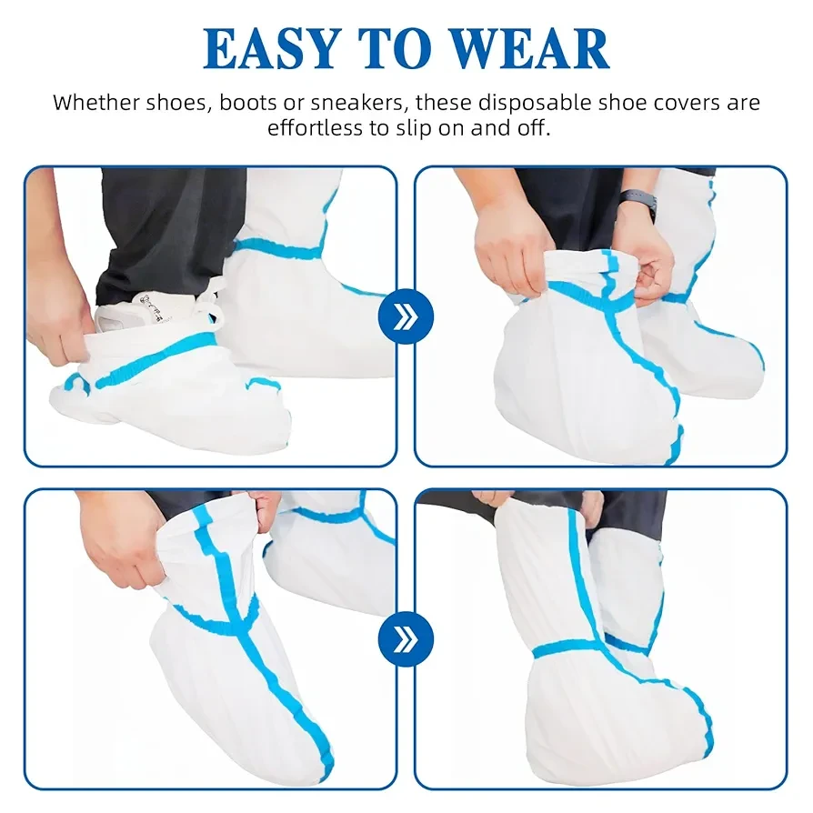 Eco-Friendly and Durable: Constructed from recyclable materials, these covers are designed for a sustainable choice for disposable shoe protection. They are also stronger and more durable than traditional fabrics, with a high resistance to tearing and abrasion, making them suitable for long-term use.