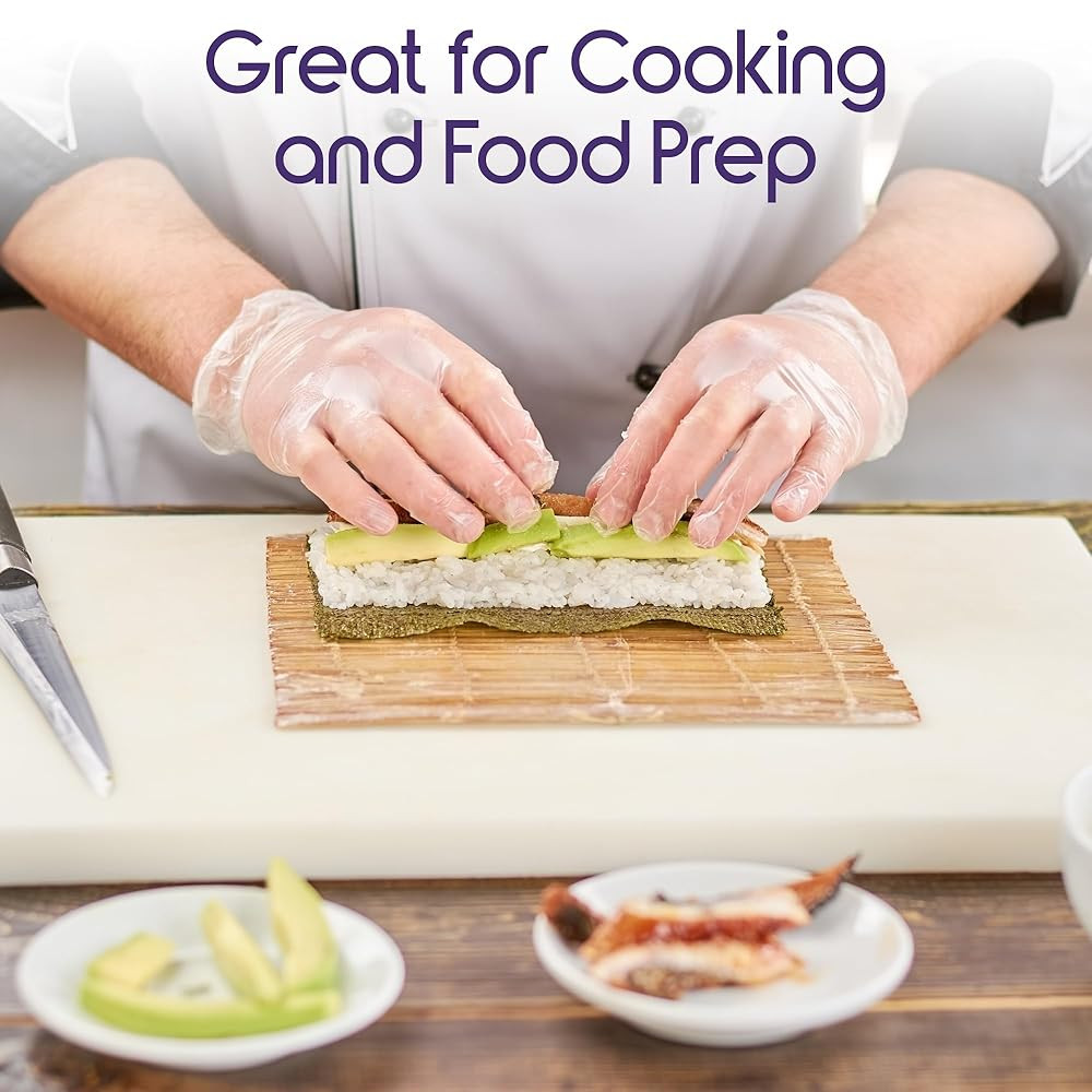 FOOD PREP COOKING GLOVES: Whether you’re preparing meals at home or working in a professional kitchen environment, our cooking gloves disposable food safe properties make them perfect for keeping your hands clean whilst preventing cross-contamination. From handling raw meats to preparing salads and baking goods, these non latex food gloves provide an ideal solution for all your food service needs Food safe gloves disposable convenience. Trusted by food service and chefs.
