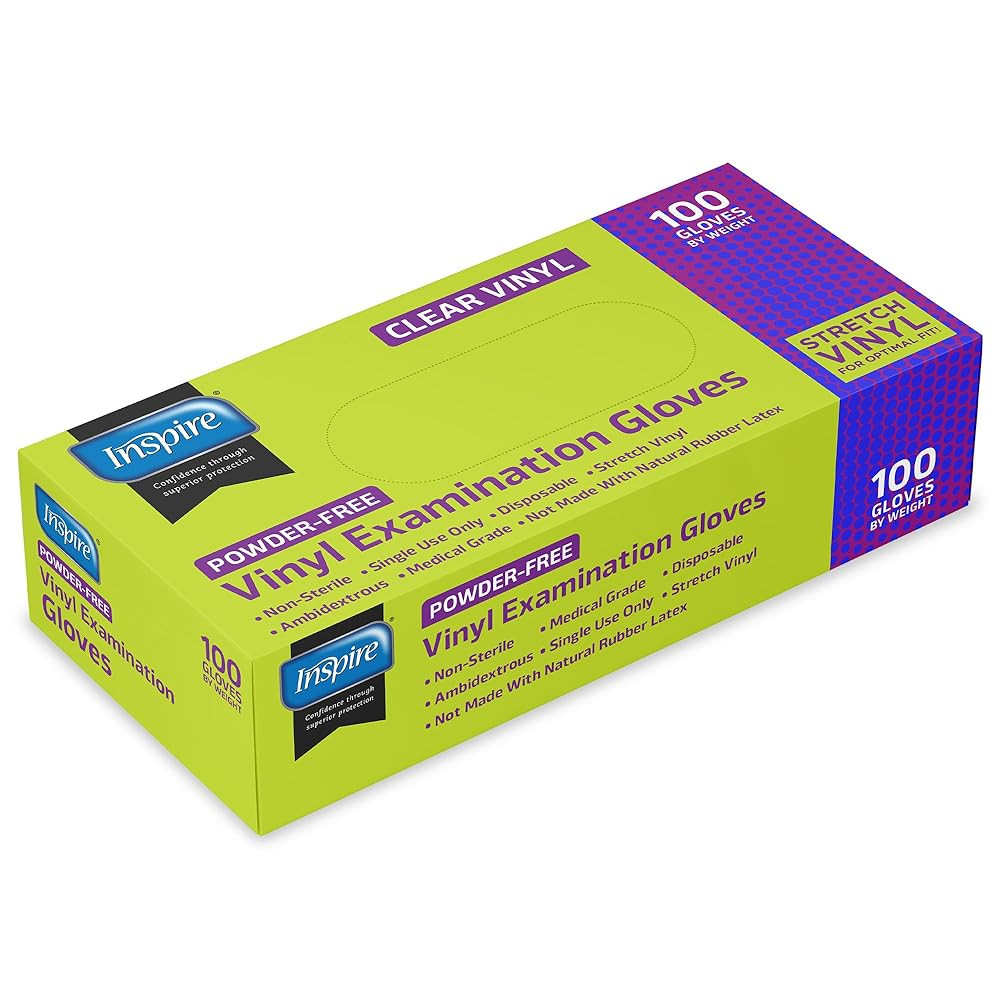 VINYL STRETCH - STRENGTH AND DEXTERITY: Inspire Stretch Vinyl Gloves provide strong protection every time. Rugged vinyl material is rip and puncture resistant, yet offers a secure fit, ease of movement, superior tactile control, and ultimate dexterity. Inspire Vinyl Gloves offer a better fit than rubber gloves disposable or plastic gloves disposable, making them ideal as medical gloves, food service gloves, or household cleaning gloves.