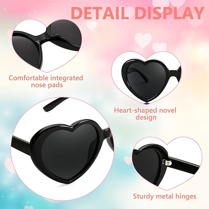 • Novel Design - Heart shaped sunglasses are an interesting trend, fashionable and new to make you look more attractive, perfect for those who want to be fun and stylish. When you wear it, you will show your unique personality and make you glamorous.