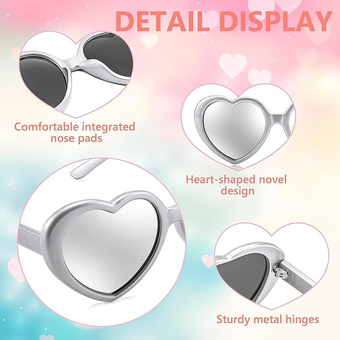• Novel Design - Heart shaped sunglasses are an interesting trend, fashionable and new to make you look more attractive, perfect for those who want to be fun and stylish. When you wear it, you will show your unique personality and make you glamorous.
