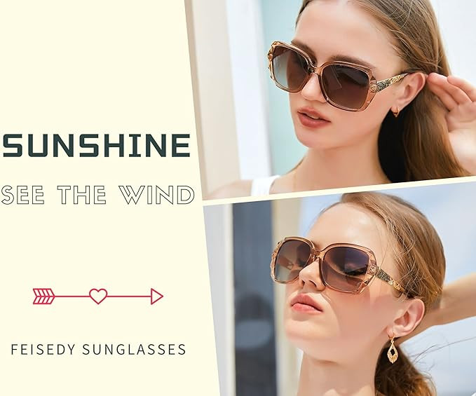 • OUTSTANDING DESIGN -- FEISEDY Brand Crystal Decorated Oversized Frame Design, Prefer Sparkling for Women. FEISEDY - Born for quality. Bring you a better shopping experience. Choose FEISEDY