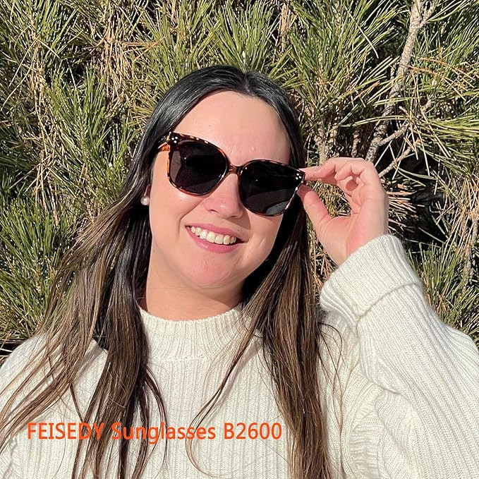 • FEISEDY RETRO Design-- Oversized Square Frame Design in minimalist style with embeded lenses, eye-catching, perfect fashion accessory to go with your outfits, a must-have sunglasses.