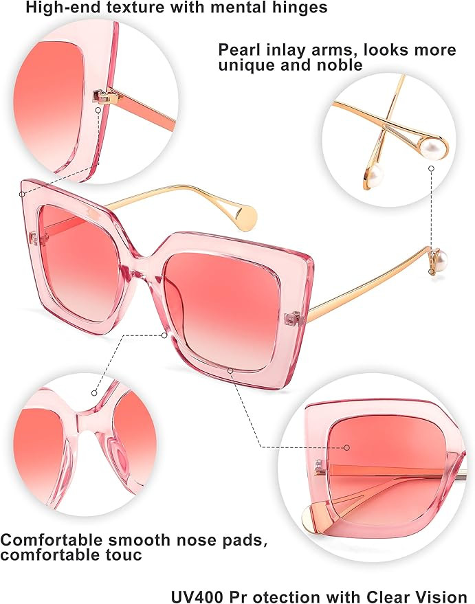 • FEISEDY Oversized Square Sunglasses Classic Design Suitable weight Comfortable frame, friendly to human body, using non-allergic materials, so that anyone can enjoy the beauty and protection of sunglasses.