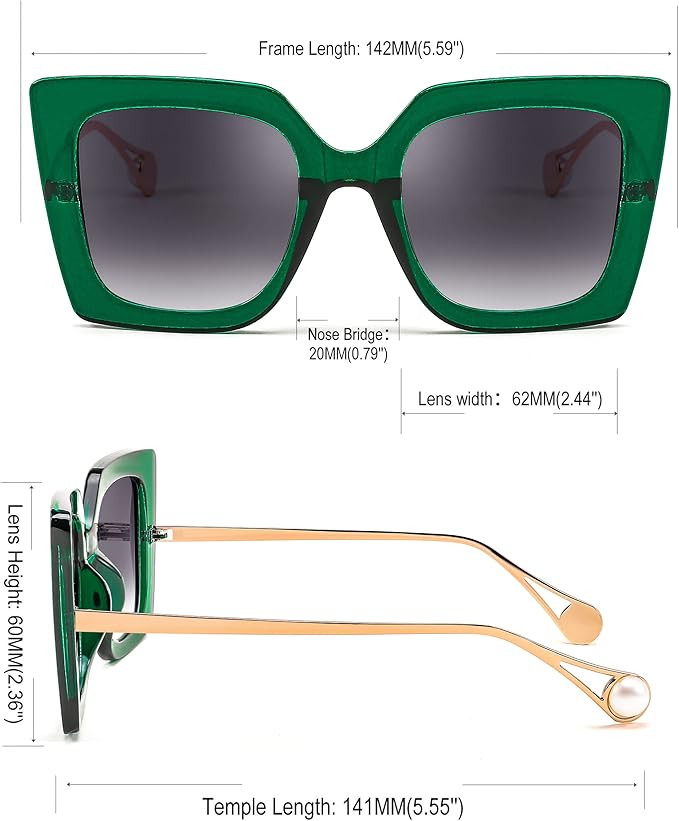 • Unique design - This cat eye frame uses a comfortable nose pad design to reduce the pressure on your bridge of the nose without leaving indentations. And the shape of your face modified by the cat's eye frame; pearl inlay arms, looks more unique and noble, you can also be beautiful and confident wearing these sunglasses