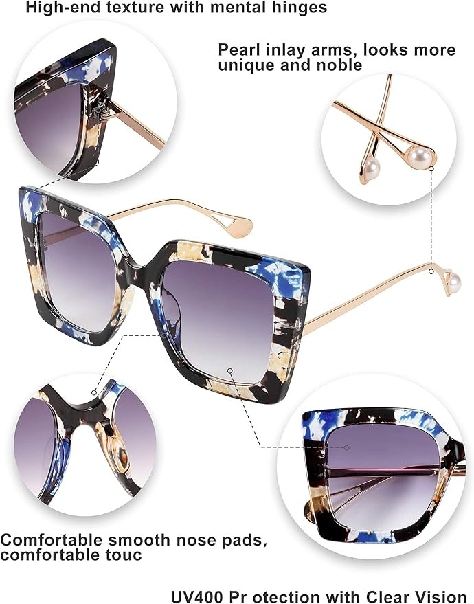 • FEISEDY Oversized Square Sunglasses Classic Design Suitable weight Comfortable frame, friendly to human body, using non-allergic materials, so that anyone can enjoy the beauty and protection of sunglasses.