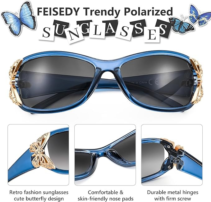 FEISEDY Trendy Polarized Y2K Sunglasses Wrap Around Butterfly Design Fashion Sunnies UV400 Protection B0078