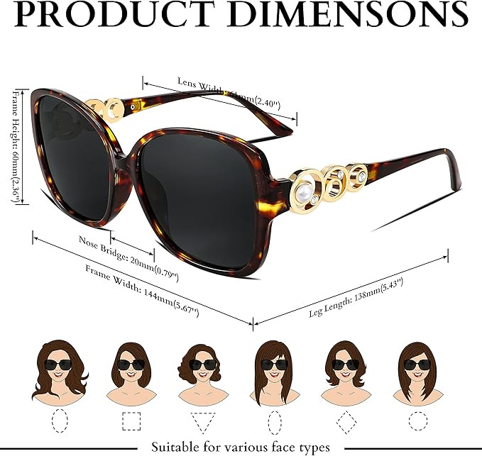 • [Fashion Women Sunglasses] This oversized sunglasses designed specifically for women are both fashionable and versatile, enhancing your look. With traditional frames and a variety of lens colors to choose from, you can easily pair these women's sunglasses with your wardrobe.