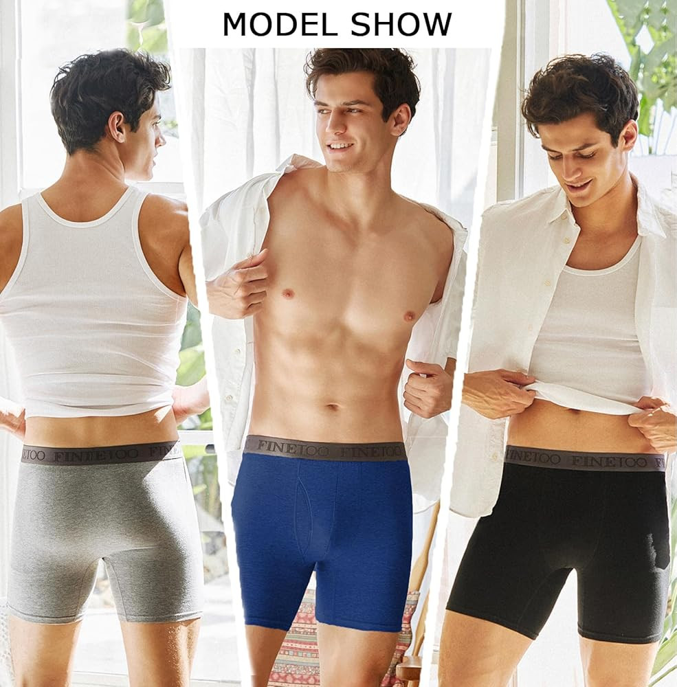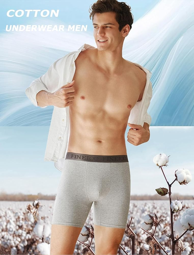 FINETOO Mens Underwear Cotton Boxer Briefs Soft Comfort Boxers Moisture-Wicking Breathable Underwear for Men Pack 3