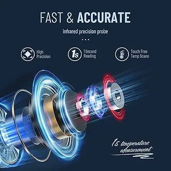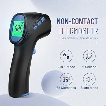 No-Contact Thermometer: This touchless thermometer provides contactless accurate temperature reading that helps you avoid cross infections. No need to clean the thermometer after every use