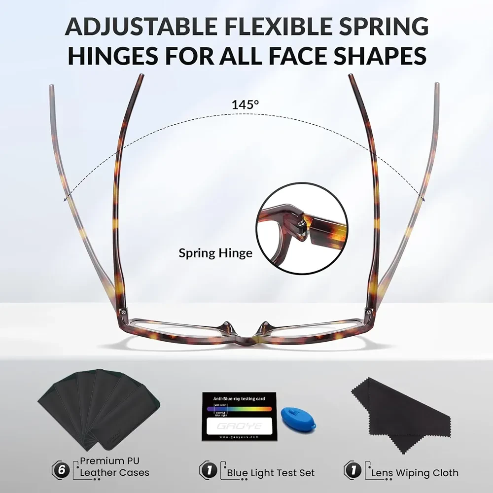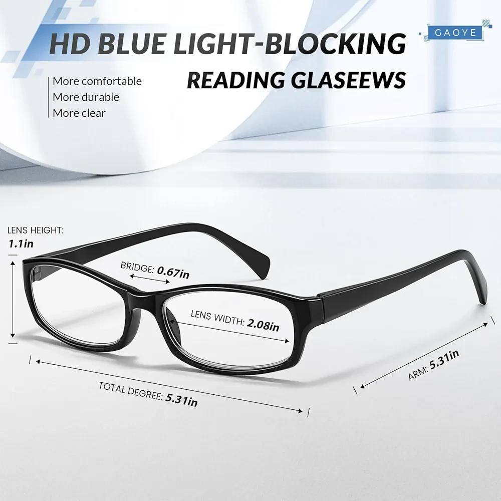 READING GLASSES - Anti bluelight glasses lenses: Gaoye reading glasses with ultra clear glasses lenses have UV400 protection and blue light blocking effect, easily filter 98.67% of harmful blue ray, relieves eye strain and migraines, creating a comfortable reading environment