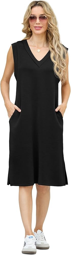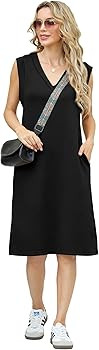 [Trendy Design]This unique midi dress has a triangle patch at the underarm for modesty without sleeves. The side slit hem accentuates your curves, making you look charming. Convenient side pockets for hands-free movement.