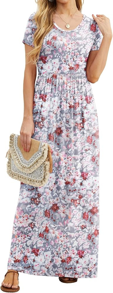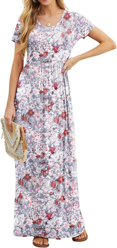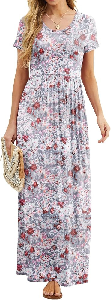 GRECERELLE Women's Short Sleeve Maxi Dresses Casual Long Dresses with Pockets