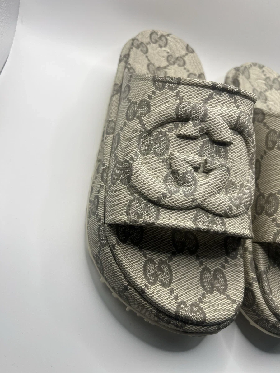 GUCCI INTERLOCKING G SUPREME SLIDE G 10/US 10.5 BRAND NEW GUARANTEED AUTHENTIC INCLUDES ORIGINAL BOX AND DUSTBAGS PLEASE FEEL FREE TO REACH OUT WITH ANY QUESTIONS