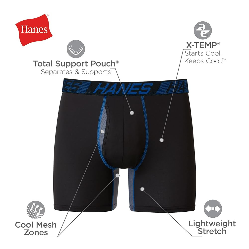 Hanes Men’s Total Support Pouch Boxer Briefs, X-Temp Cooling, Moisture-Wicking Underwear, Regular, Long-leg and Trunk, 3-Pack