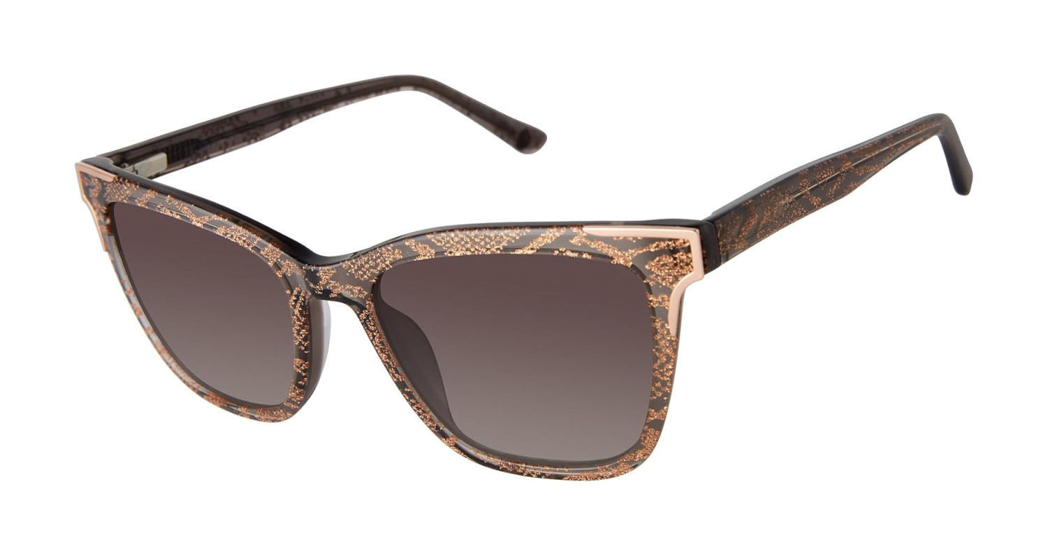 • Shimmer with sophisticated sparkle in this sunglass featuring a custom designed rose gold snake skin pattern and rose gold metal décor for added glamour