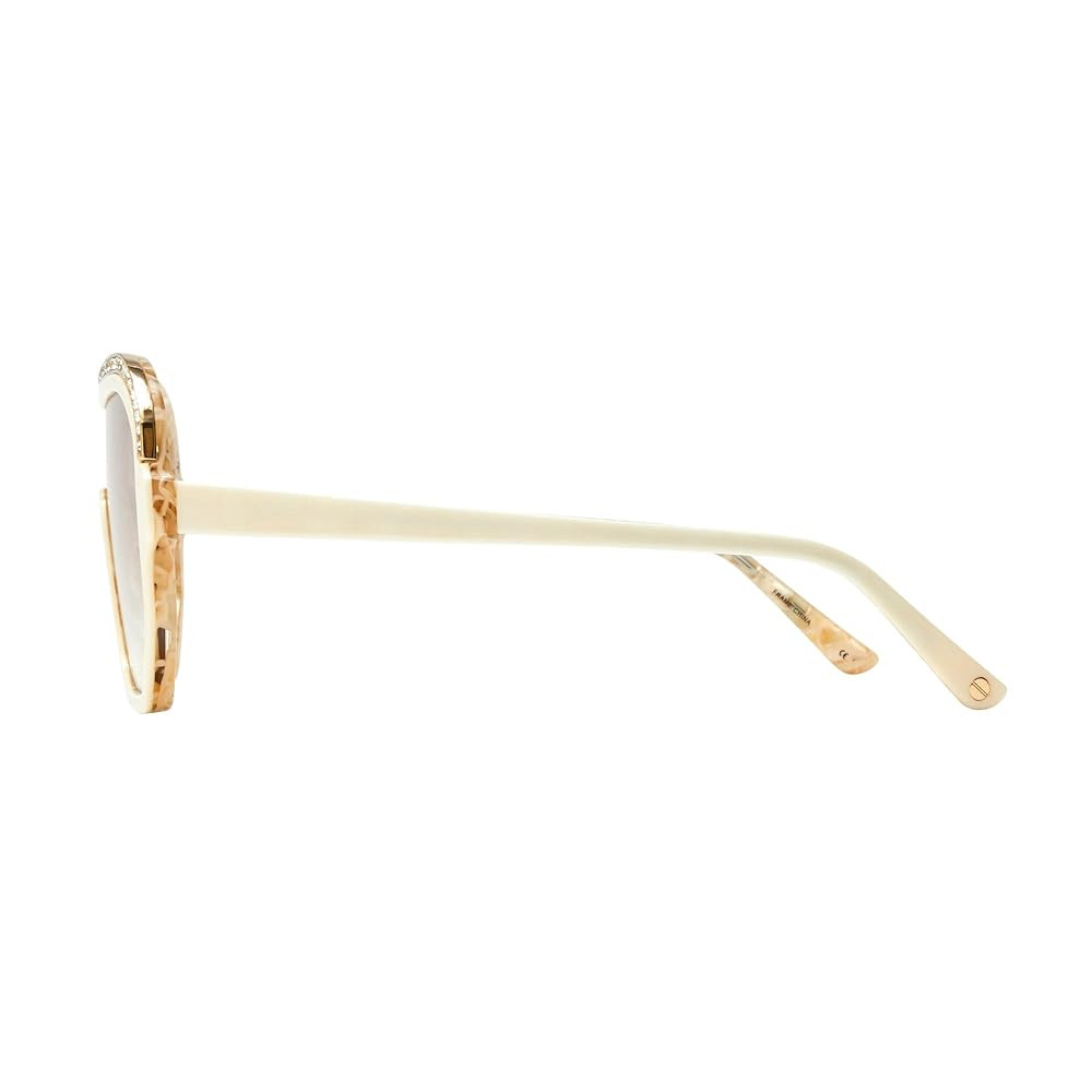 • Handmade from bone color custom acetate featuring gold metal brow inlay, channel set diamond colored crystal stones, and rich marbled inside details Frame measurements: 132 mm width | 140 mm temple length