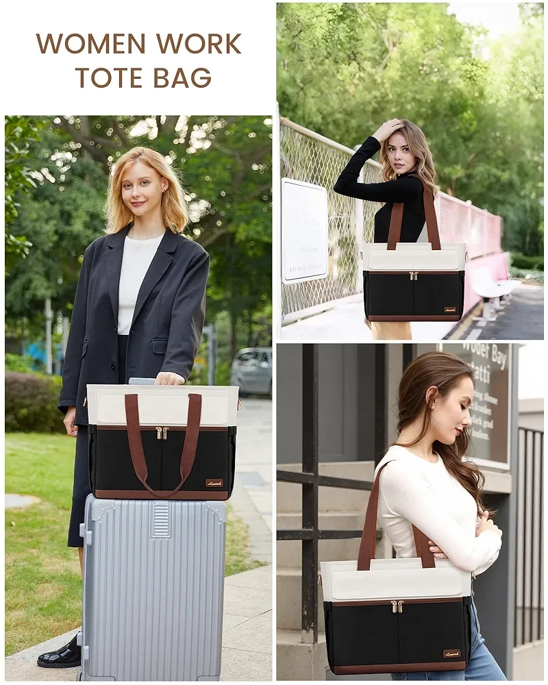 【Plenty of Space】This tote bag for women work features a large capacity to fit a 15.6-inch laptop. With 8 internal pockets including a laptop compartment, 2 mesh pockets, and 2 slip pockets, this teacher tote bag ensures easy organization of all your essentials.