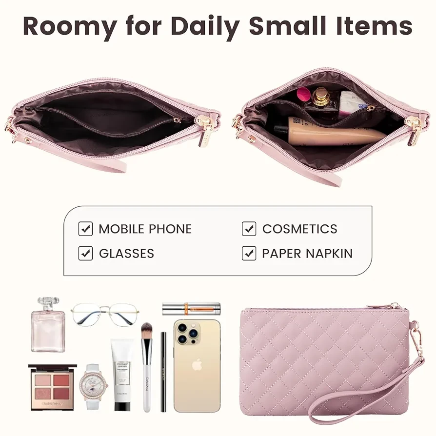 ? COMPLIMENTARY CLUTCH BAG ☛ The clutch purse is compact enough to fit in your hand or easily slip into a larger bag, yet spacious enough to hold all your essentials, such as your phone, keys, cards, and makeup.