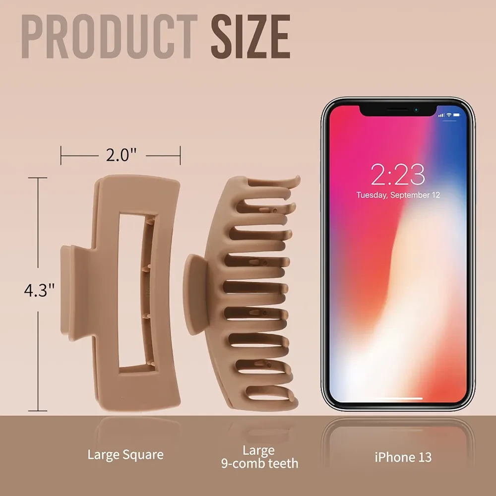 LuSeren Hair Clips for Women 4.3 Inch Large Hair Claw Clips for Women Thin Thick Curly Hair, Big Matte Banana Clips,Strong Hold jaw clips,Neutral Colors