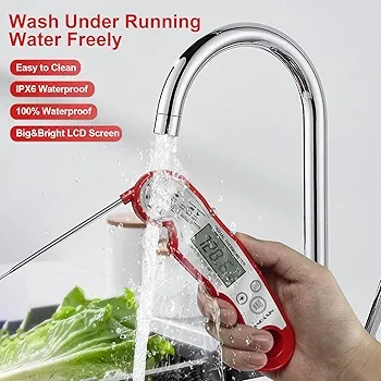 • [Waterproof and Durable] - IP65 rated waterproof, the thermometer can be washed under running water without fear! With a strong ABS plastic body, it can withstand accidental drops or other impact accidents. And features a magnetic back to allow for placement on any metal surface or use the hang hole for hooks.
